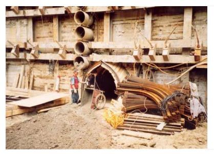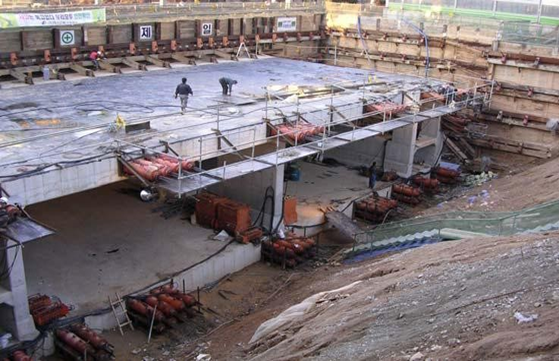 <그림 2> 프론트 잭킹 공사중 흙막이 공사