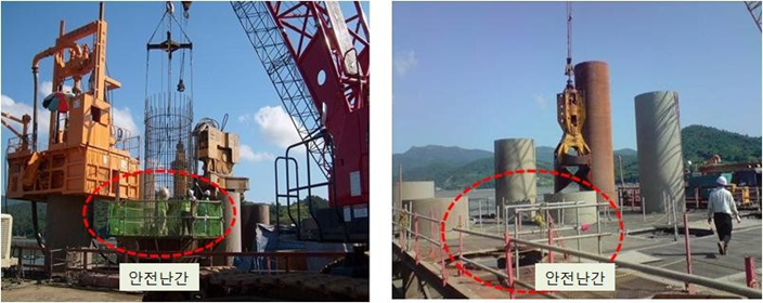 (2) RCD에 의한 내부굴착 시에는 해상 RCD 작업대에서의 떨어짐 위험이 있으니 다 음 사항을 준수하여야 한다.